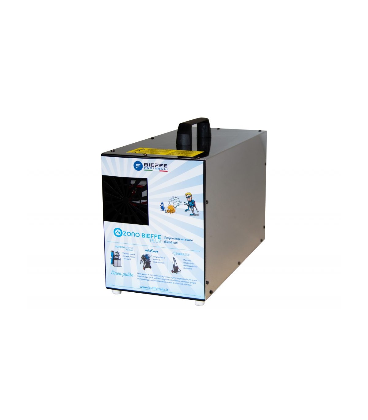 Η γεννήτρια όζοντος OZONO BIEFFE PLUS έχει σχεδιαστεί για την απολύμανση μεγαλύτερων δωματίων, έως 1550 m3. Σύμφωνα με τα τετραγωνικά πλάνα που θα απολυμανθούν, είναι δυνατόν να επιλέξετε το πιο κατάλληλο πρόγραμμα από τα 9 διαθέσιμα.
