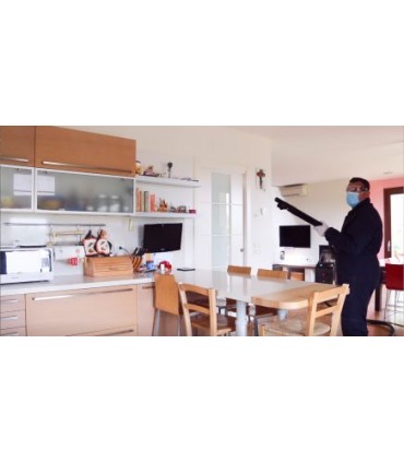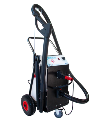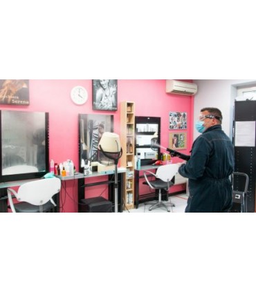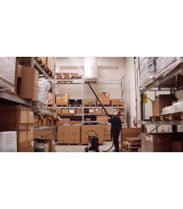 Το SANIBLASTER είναι μια μηχανή νεφελοποίησης, που χάρη στο αποτελεσματικό σύστημα ψεκασμου του, είναι σε θέση να διανέμει ομοιόμορφα το διάλυμα για την απολύμανση του χώρου. Το SANIBLASTER κινείται εύκολα ακόμα και στους πιο περιορισμένους χώρους και μπορεί να φτάσει, χάρη στην επεκτάσιμη λαβή του, σε ύψος έως 8 μέτρα.