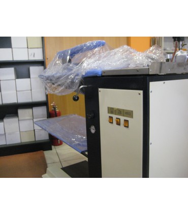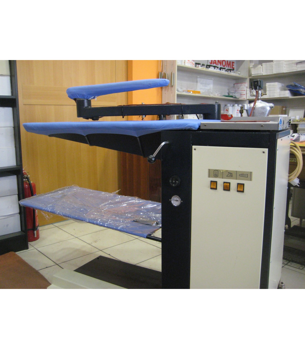 Μεταχειρισμένη σανίδα σιδερώματος με θέρμανση, απορρόφηση και μπράτσο, ιταλικής προέλευσης. Διαθέτει ενσωματωμένο μπόιλερ και παροχές για ένα σίδερο. Συνδέεται απευθείας στη βρύση ή σε δοχείο νερού με αποτέλεσμα την απεριόριστη αυτονομία ατμού. Χρειάζεται μόνο 10 λεπτά για να ζεσταθεί. Στην τιμή συμπεριλαμβάνονται ένα σίδερο και αντικολλητικό πέλμα TEFLON. Εγγύηση ενός (2) έτη.